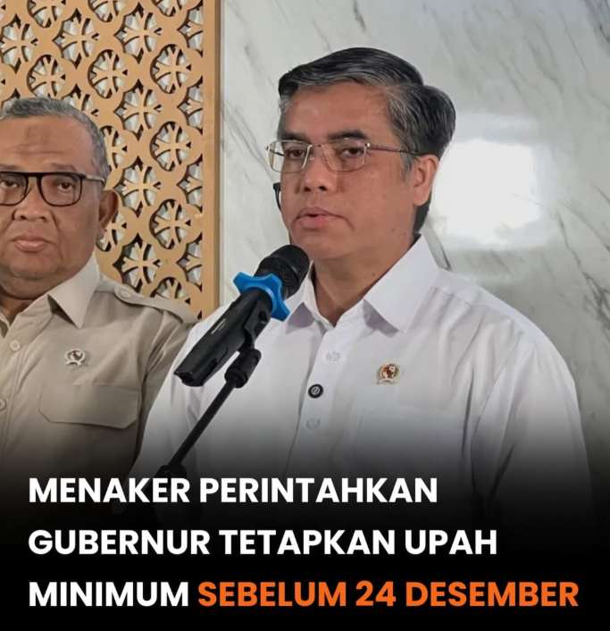 Menteri Ketenagakerjaan Yassierli meminta seluruh gubernur serta kepala daerah terkait untuk segera menetapkan upah minimum di wilayah masing-masing paling lambat pada 24 Desember 2025. Penetapan tersebut menjadi bagian dari tahapan akhir penyusunan kebijakan pengupahan tahun 2026.